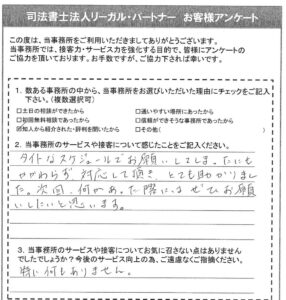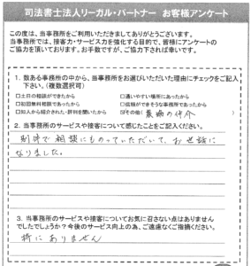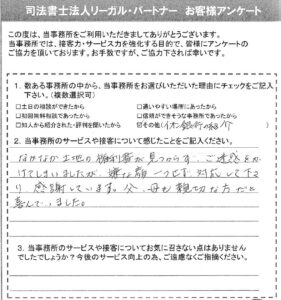 遠方から分かりやすいご説明を頂き、重要な書類を手あつくご郵送ありがとうございました