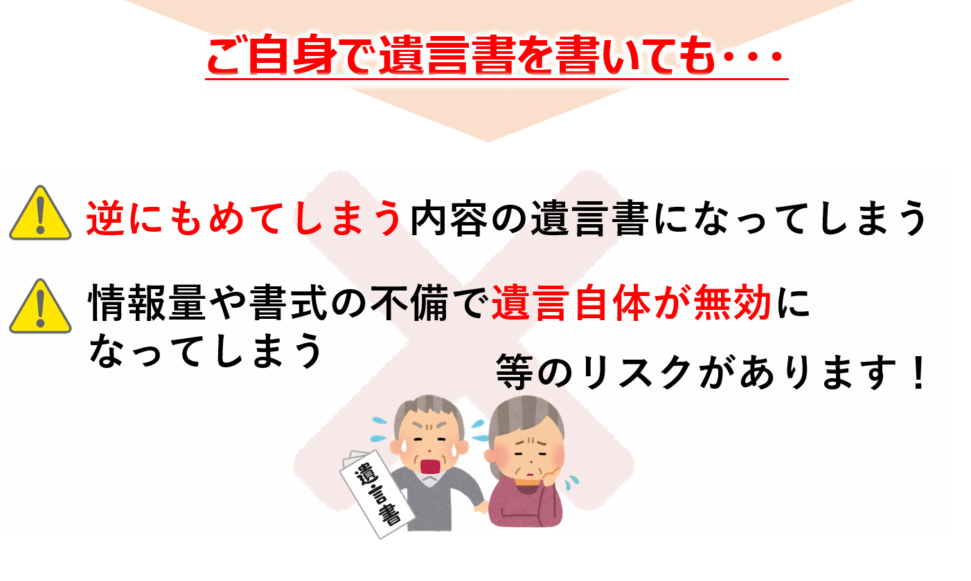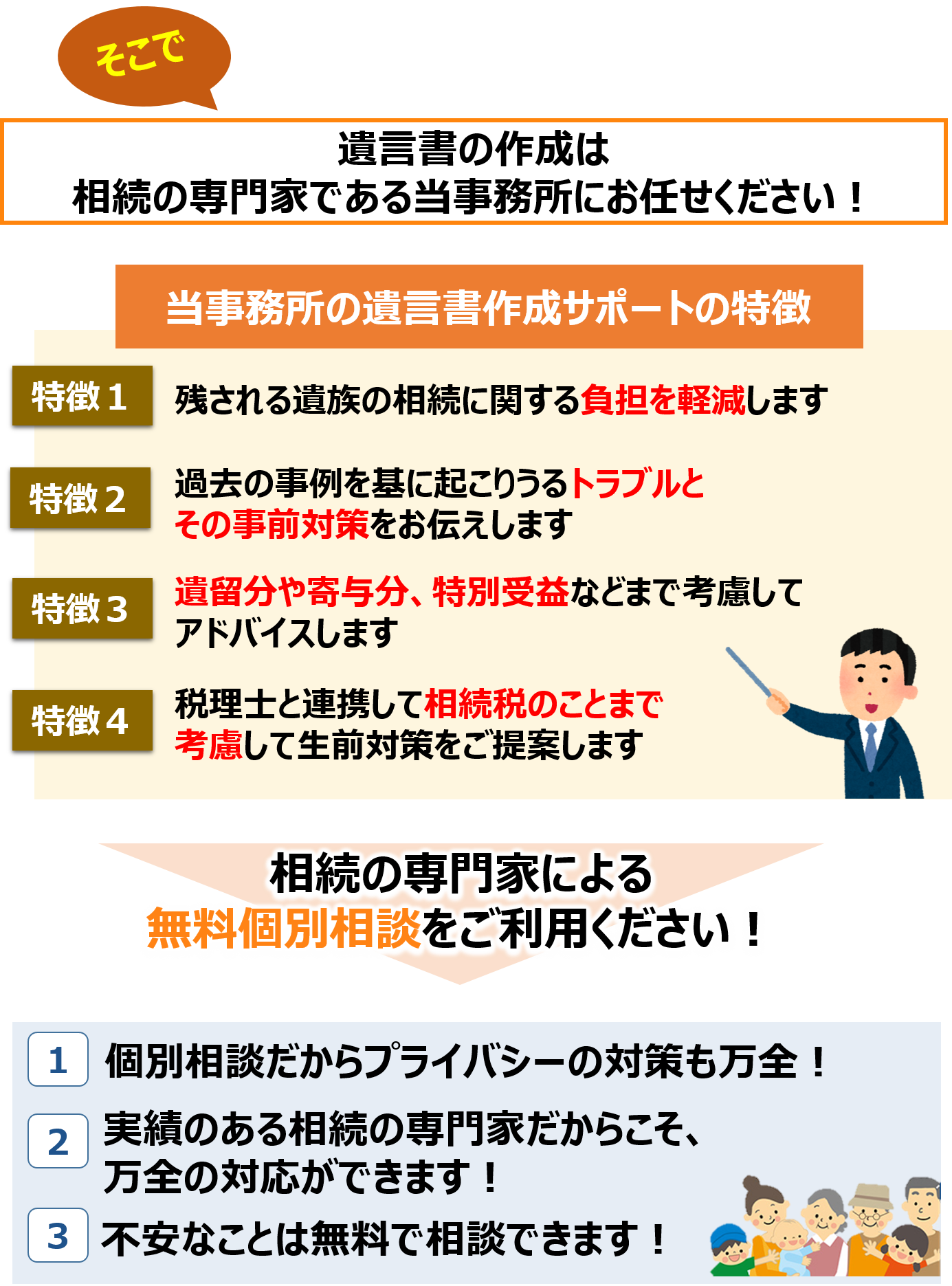 当事務所では、単に遺言書を作るだけでなく、お客様が後悔のない最適な遺言を残せるようサポートしております。