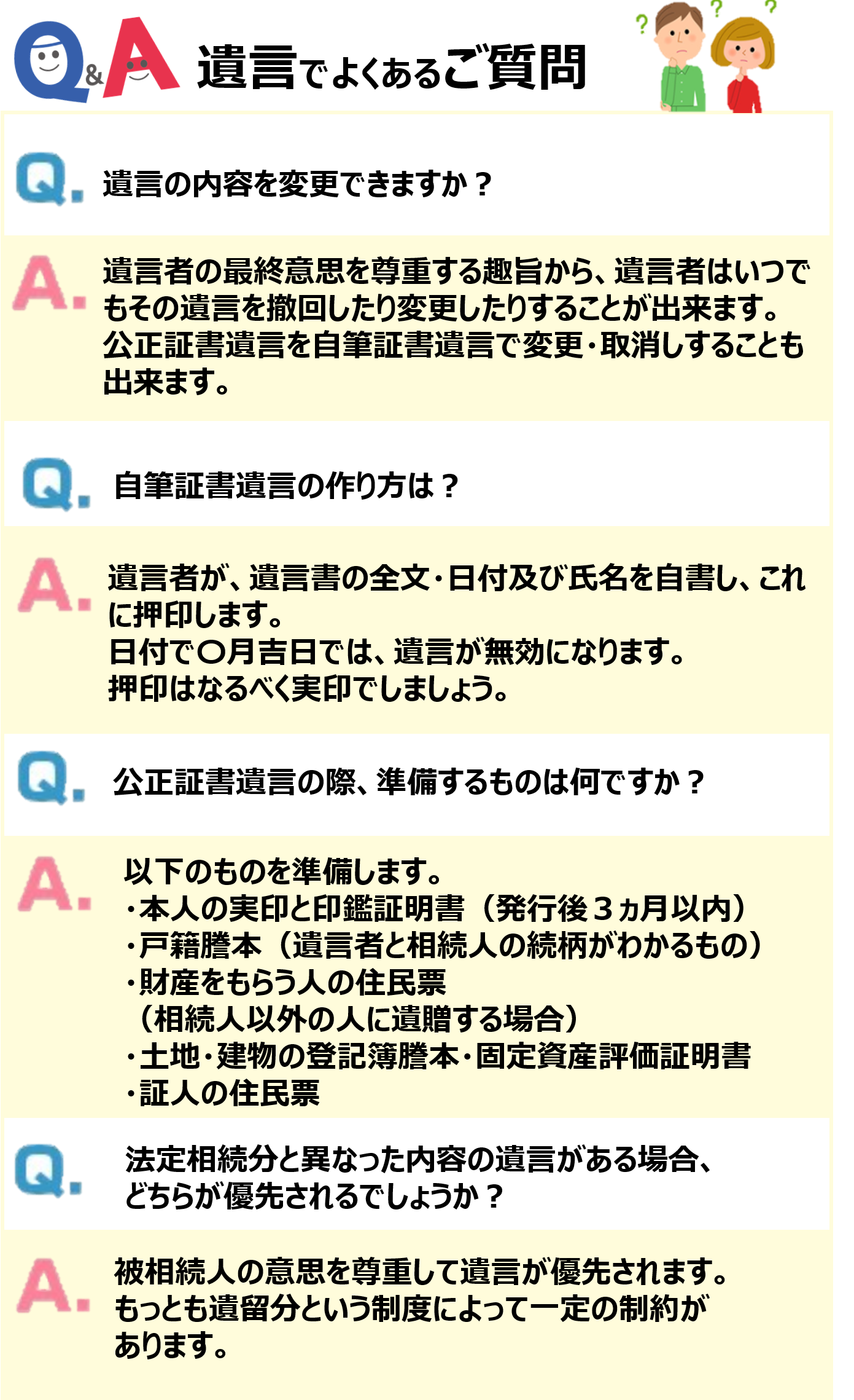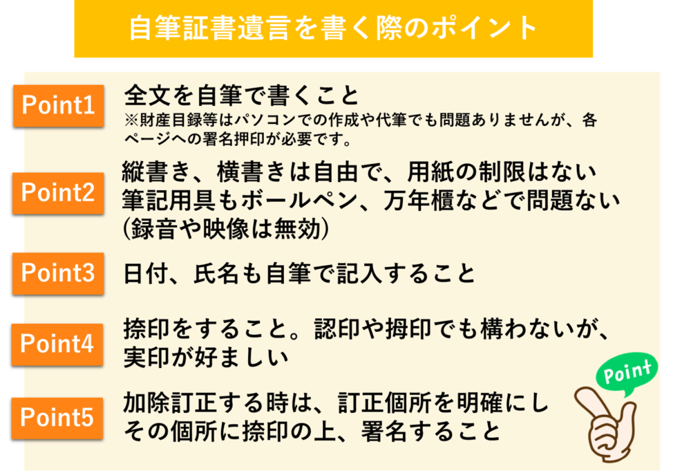 また、遺言は、文字で残すことを原則とし、後日の改変が可能なビデオテープや録音テープなどは認められていません。