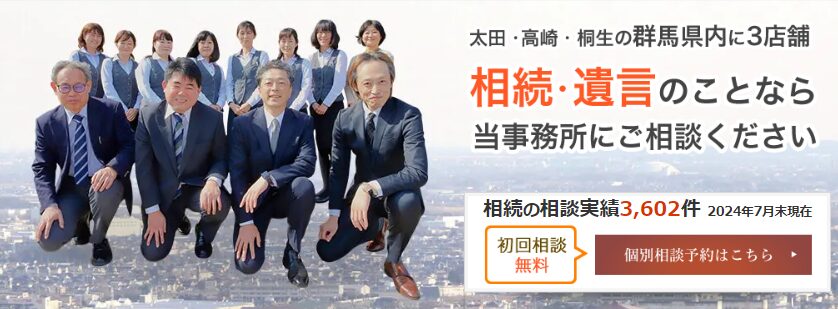 群馬県で初めての司法書士法人として開業して以来、相続の専門家が多数在籍し、法律の専門家として、群馬県太田市、桐生市、足利の皆様のお悩みを最適な方法で解決します。