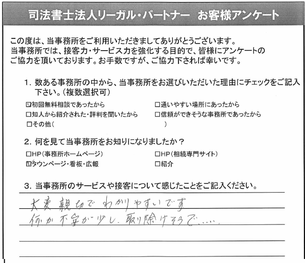 3.当事務所のサービスや接客について感じたことをご記入ください。