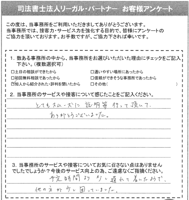 2.当事務所のサービスや接客について感じたことをご記入ください。