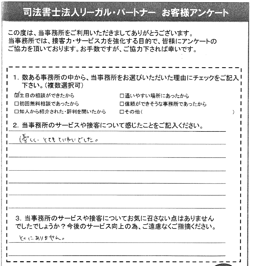 2.当事務所のサービスや接客について感じたことをご記入ください。