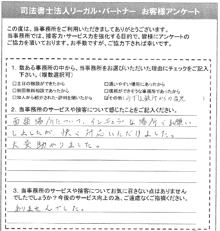 面談場所について、イレギュラーな場所でお願いしましたが、快く対応いただけました。