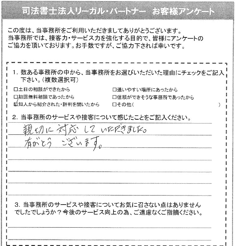 2.当事務所のサービスや接客について感じたことをご記入ください。