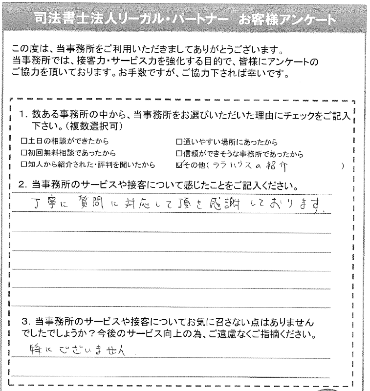 3.当事務所のサービスや接客についてお気に召さない点はありませんでしたでしょうか?