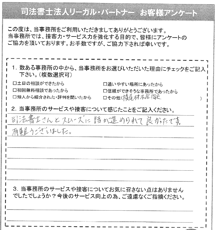 司法書士さんとスムーズに話が進められて良かったです