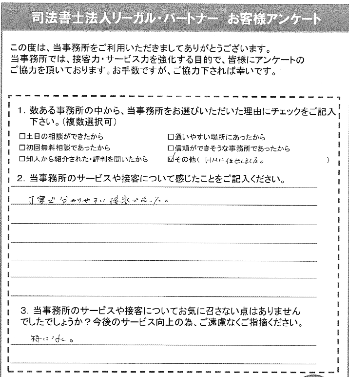 2.当事務所のサービスや接客について感じたことをご記入ください。