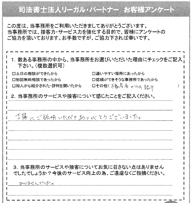 3.当事務所のサービスや接客についてお気に召さない点はありませんでしたでしょうか?