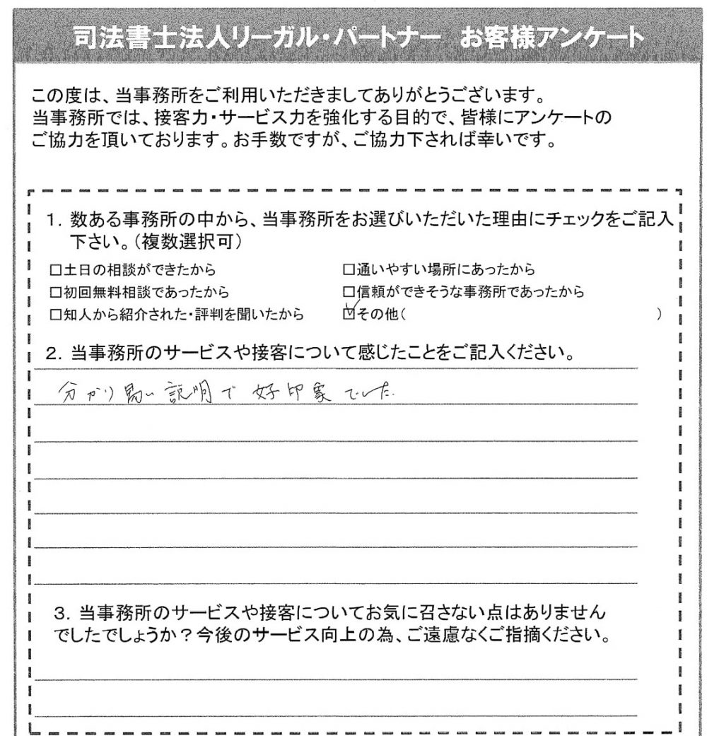 2.当事務所のサービスや接客について感じたことをご記入ください。