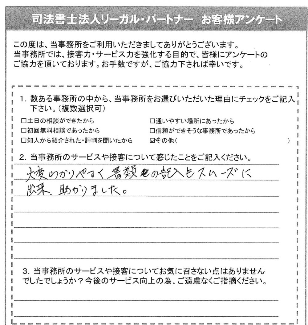 大変わかりやすく書類の記入もスムーズにでき、助かりました。