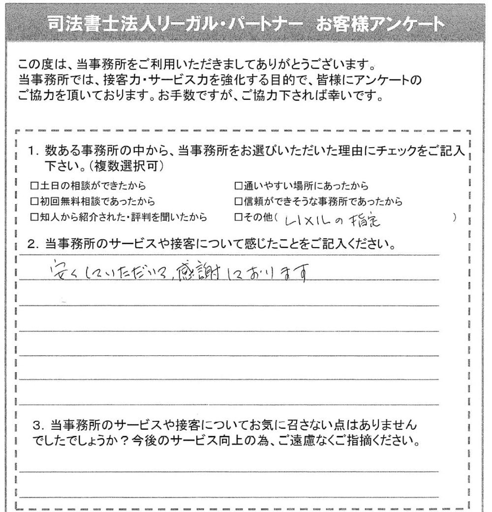 2.当事務所のサービスや接客について感じたことをご記入ください。