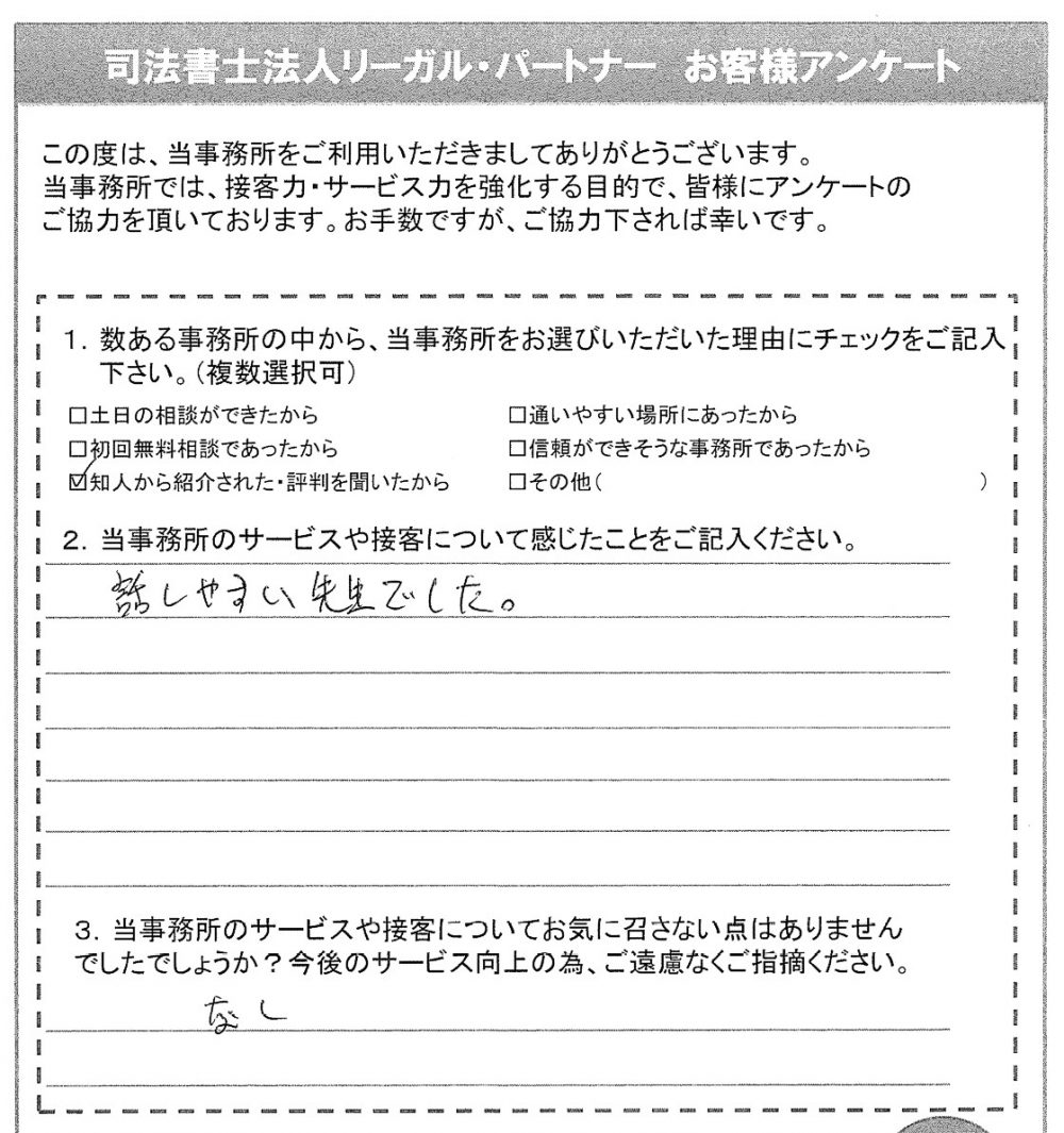 話しやすい先生でした。