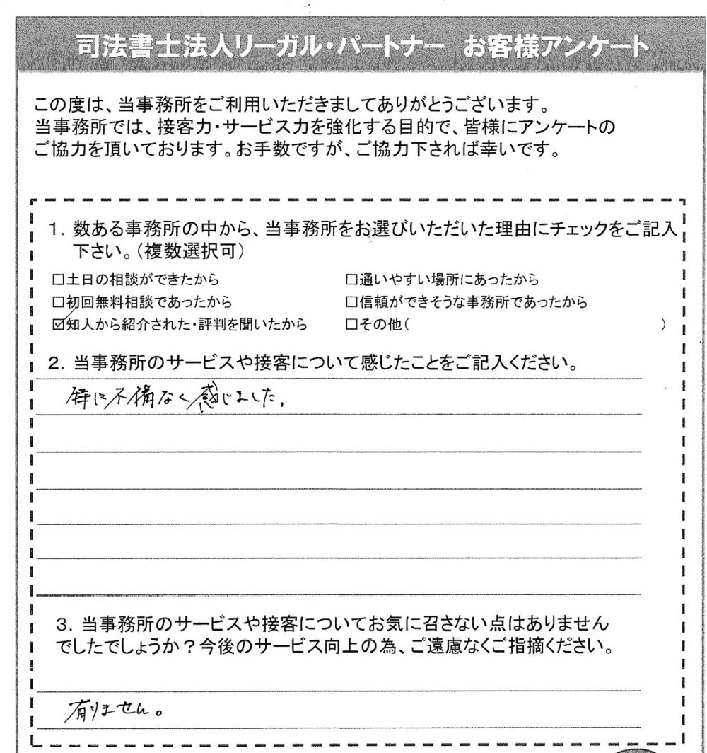 2.当事務所のサービスや接客について感じたことをご記入ください。