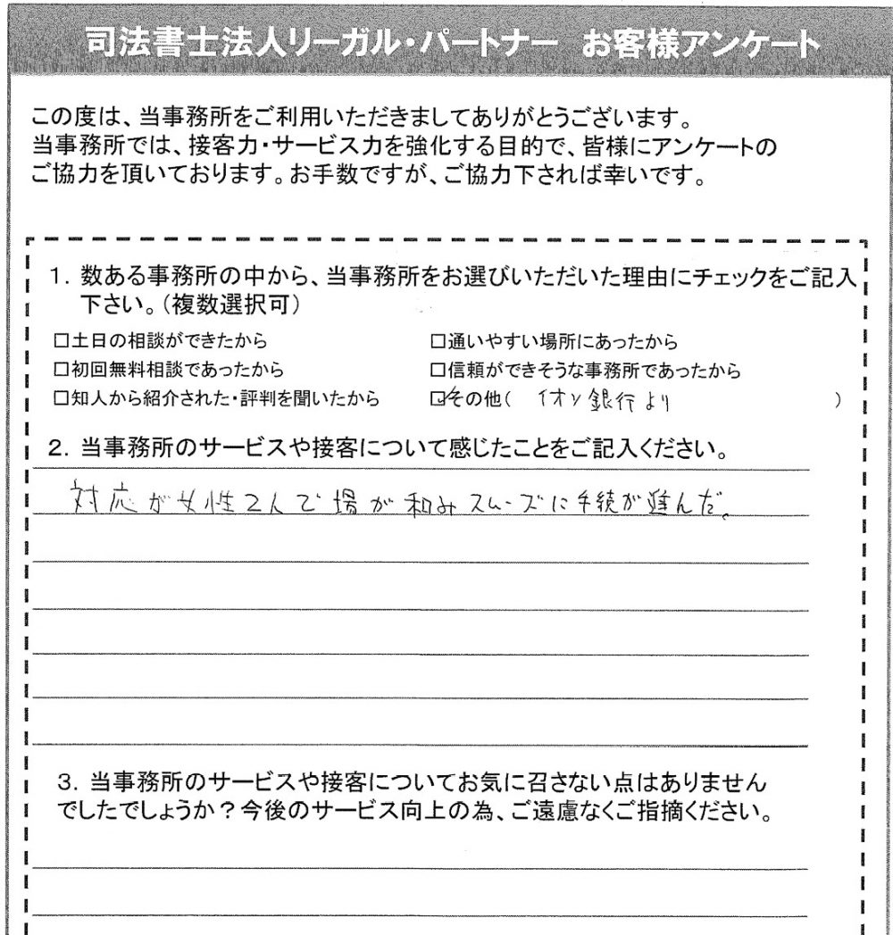 対応が女性2人で、場が和みスムーズに手続が進んだ。