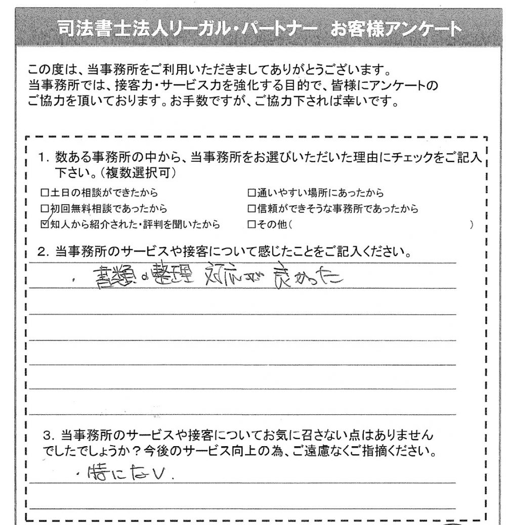 2.当事務所のサービスや接客について感じたことをご記入ください。