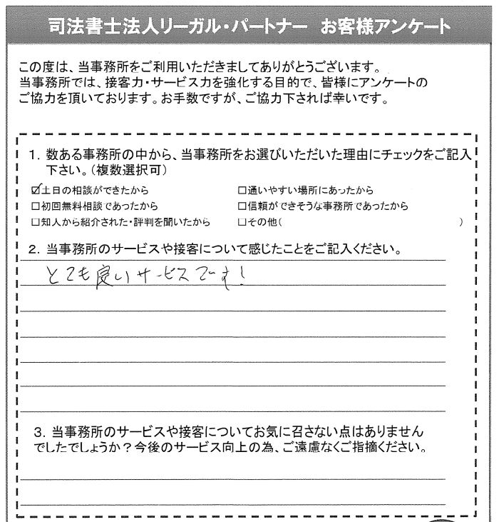 2.当事務所のサービスや接客について感じたことをご記入ください。
