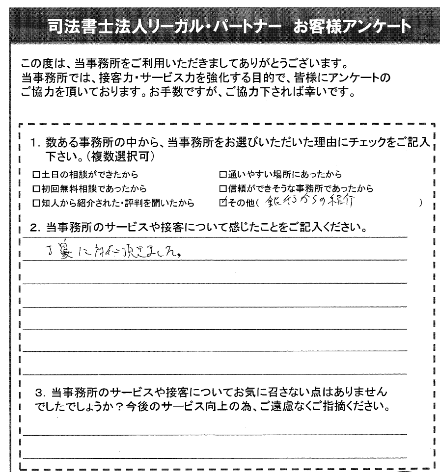 2.当事務所のサービスや接客について感じたことをご記入ください。