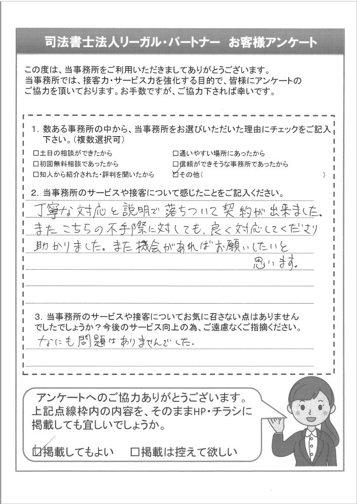 2.当事務所のサービスや接客について感じたことをご記入ください。