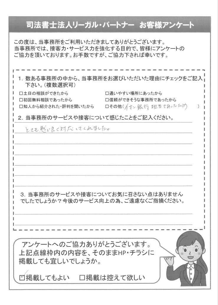 とても感じ良く対応してくれました。