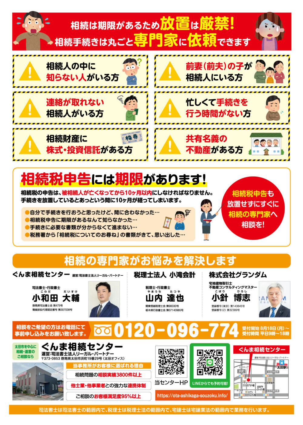 簡裁訴訟代理認定番号 第307038号専門分野 不動産登記全般、相続全般 経歴 群馬司法書士会所属。平成10年に横浜国立大学卒業後、大手ハウスメーカーに入社。同年に宅地建物取引主任者試験に合格。平成13年に退社後、平成15年に司法書士試験と行政書士試験に合格。平成16年に合同司法書士リーガル・パートナーを開業。同年に簡易訴訟代理認定を取得。平成17年に群馬県初の司法書士法人である、司法書士法人リーガル・パートナー開業。現在は、群馬県の太田市を中心に、桐生市、高崎市に事務所がある。群馬県の相続の専門家として、群馬県内の相続の相談に対応している。